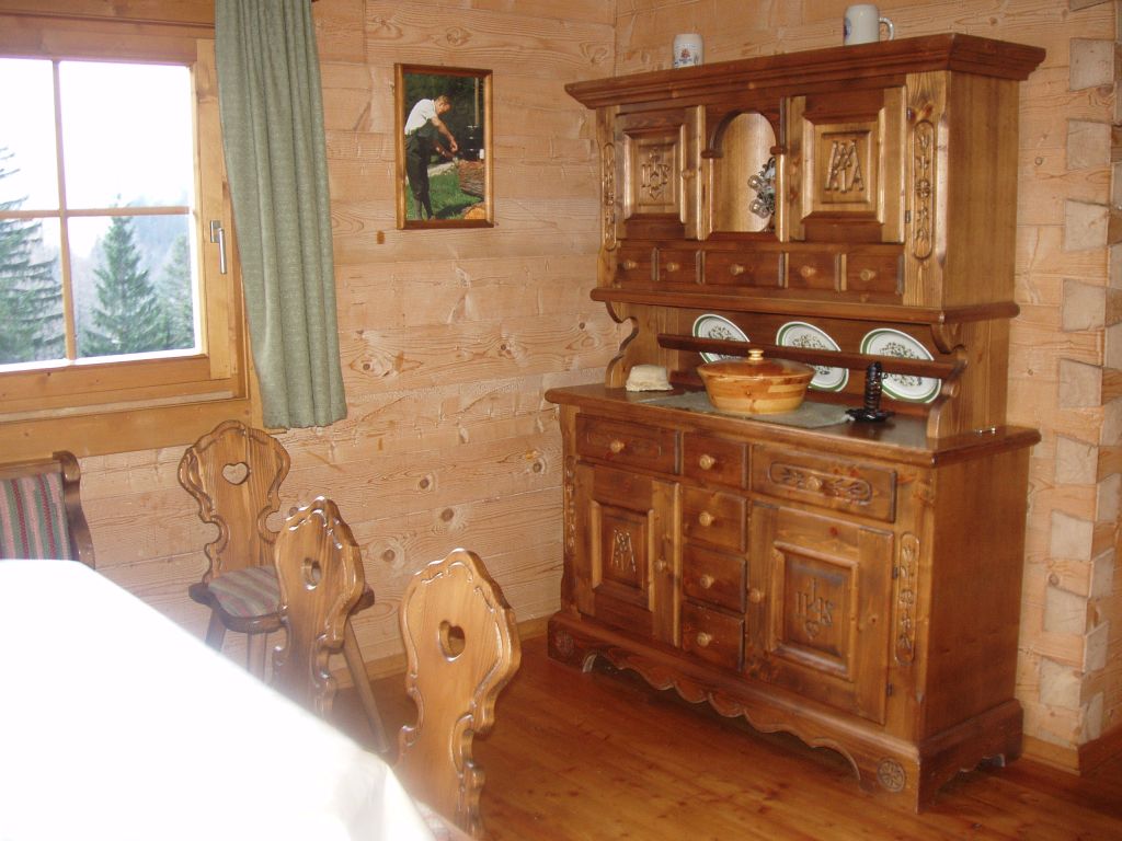 Ob Romantikurlaub zu zweit oder Erlebnis für die ganze Familie, auf unserer Almhütte werden Sie sich wohlfühlen. Das Selbstversorgerhaus steht auf einer aussichtsreichen Kuppe hoch droben am Berg und bietet Platz für sechs bis acht Personen. Übernachtungsmöglichkeiten gibt es in zwei Zimmern, eines mit Doppelbett und Couch und ein zweites mit zwei Stockbetten und einer Couch. Außerdem haben wir in der Hütte ein Badezimmer mit Dusche und abgetrenntem WC (Kalt- und Warmwasser, der Warmwasserboiler wird über den Küchenherd aufgeheizt) sowie einen 220 Volt-Netzstromanschluss für Sie eingerichtet.